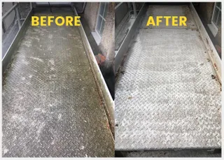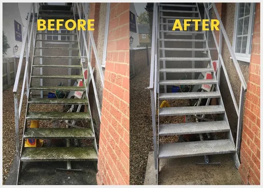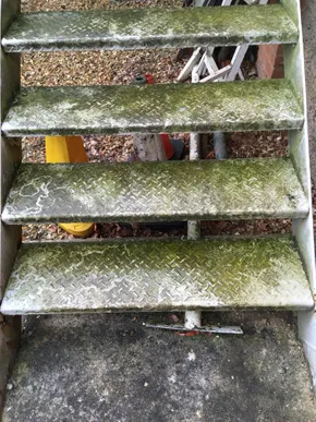 Understanding the importance of having a safe way to exit a building in the event of a fire, we were able to clean the steps at short notice. Using our high pressure turbo lance, we were able to remove the algae and muck and restored the steps so that they were no longer a health and safety issue.
